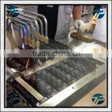 This model is fully automatic model. It can finish material filling, forming and roasting whole process. This machine can produce different cakes with filling by changing moulds and recipe. The whole machine is made of stainless steel 304, and its electric panel is touch screen.