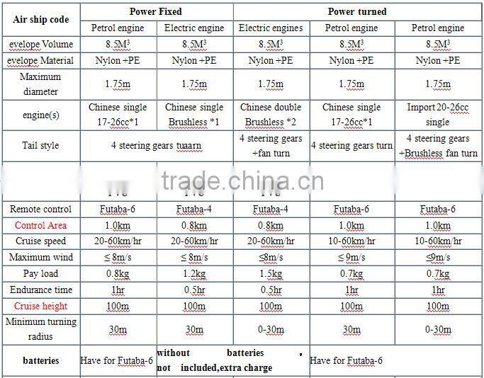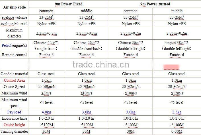 9 meters Remote control airship datas and price