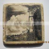 Our marble coaster product are processed with meticulous cutting, polishing, manual drawing, into a cute coaster, mural artware product, delicate patterns, featured with simplicity and nature, or vintage style, or modern style, colored with black green, beige, rusty and etc. It is a new natural green product. The standard dimension is about 10*10*1cm, weighs about 200g, favoured by white-collar workers, on the table, in the office, and more that, it would manifest one`s personality, to give a expression of talents in modern city. And it also can be used as a media for enterprise propaganda, or product items promotion.