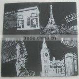 A: Our product is mainly made of slate, marble, sandstone, and some are made of granite,travertine, and soapstone. Product contains marble coaster, slate placemat, and slate coasters, candle holder, clock, photo frame, and customized design of slate products, such as cake stand, thermometer, label, blackboard, doorplate, mural, key ring, bird house, hanging decorations, and other slate artwares.