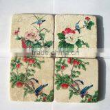 Our marble cup mat and sandstone cup mat are processed with meticulous cutting, polishing, manual drawing, into a cute cup mat, mural artware product, delicate patterns, featured with simplicity and nature, or vintage style, or modern style, colored with black green, beige, rusty and etc. It is a new natural green product. The standard dimension of cup mat is about 10*10*1cm, weighs about 200g, favored by white-collar workers, on the table, in the office, and more that, it would manifest ones personality, to give a expression of talents in modern city. And it also can be used as a media for enterprise propaganda, or product items promotion.