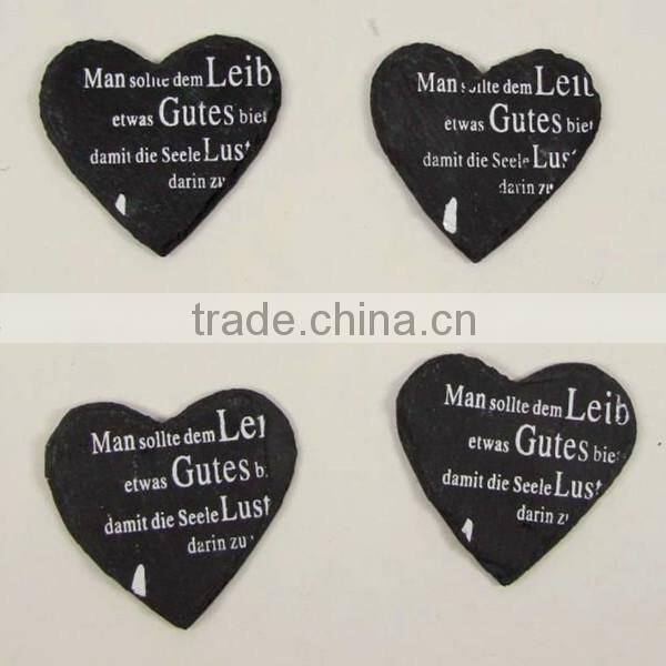 A: Our product is mainly made of slate, marble, sandstone, and some are made of granite,travertine, and soapstone. Product contains marble coaster, slate placemat, and slate coasters, candle holder, clock, photo frame, and customized design of slate products, such as cake stand, thermometer, label, blackboard, doorplate, mural, key ring, bird house, hanging decorations, and other slate artwares.