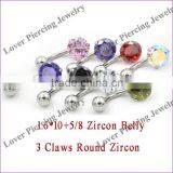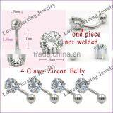 3 Claws Zircon High Polish Stainless Steel Navel Belly Piercing Jewelry [SS-E827]