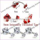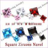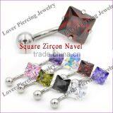 High Polish With Square Zircon Top Design Stainless Steel Navel Belly Ring [SS-E847]