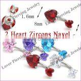 Double Heart Zircons Design High Polish Stainless Steel Navel Belly Ring [SS-E873]