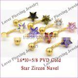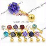 Gold Plated Zircon High Polish Stainless Steel Navel Belly Piercing Jewelry [SS-E829]