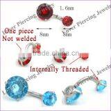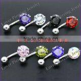With Zircon Top Design High Polish Stainless Steel Navel Belly Ring [SS-E825]