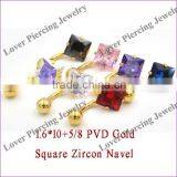 PVD Gold With Square Zircon Top Design Stainless Steel Navel Belly Ring [SS-E848]