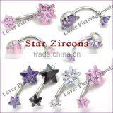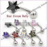 High Polish With Star Zircon Top Design Stainless Steel Navel Belly Ring [SS-E862]