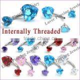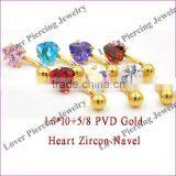 High Polish With Heart Zircon Top Design Stainless Steel Navel Belly Piercing Jewelry [SS-E871]