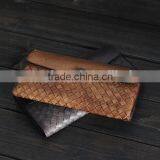 Long Wallet With Handmade Woven,Retro Grain Cow Leather Wallet,Three Folded Wallet