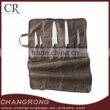 Hign Quality Waxed Canvas Knife Roll Bag With Leather Handle and Shoulder Strap Wholesale