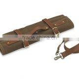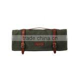 Hign Quality Waxed Canvas Knife Roll Bag With Leather Handle and Shoulder Strap Wholesale