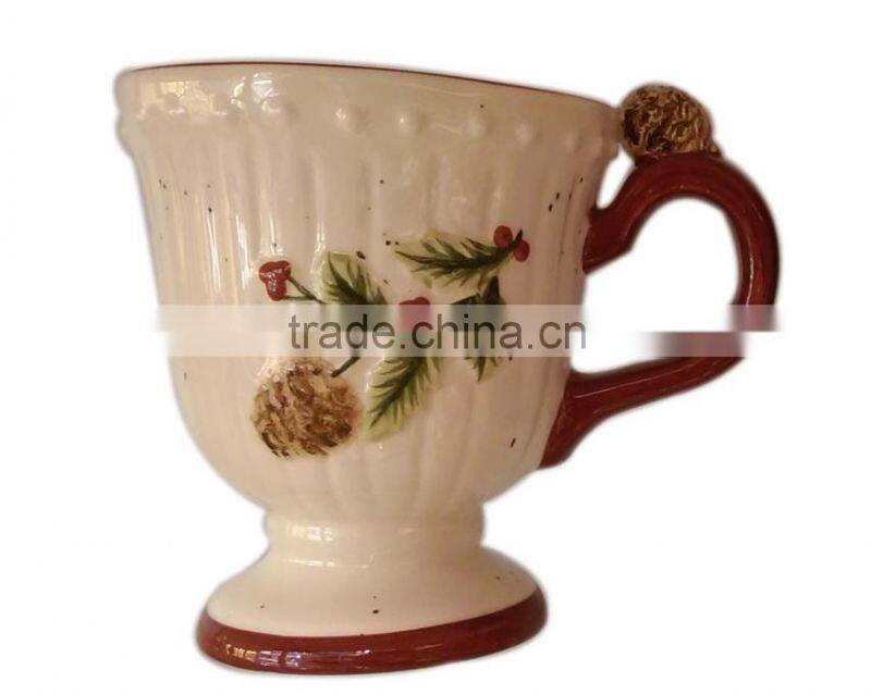 Hand-painted Goblet Earthenware Mug With Unique Handle