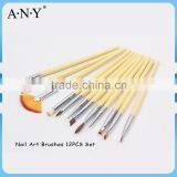 ANY Nail Art Nail Artist Using Wood Handle Nylon Hair Professional Nail Art Brush Set 12PCS