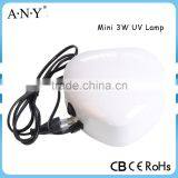 Professional Home Using White Heart Shape 3W Nail Curing Light UV Nail Polish Dryer