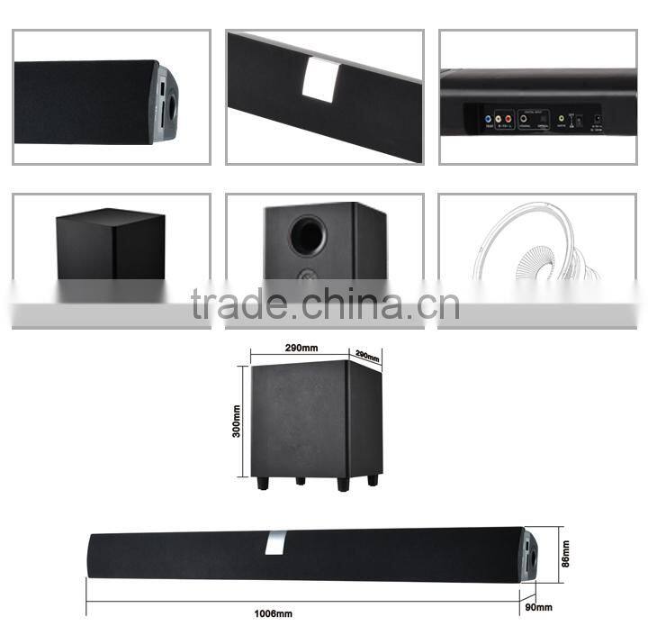 2015 HOT SELL PRIVATE MODEL TV SOUND BAR AND WOOFER SYSTEM WITH OPTICAL COAXIAL FM RADIO USB SD CARD INPUTS