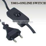 Two Poles European Power Cord With On/Off Switch