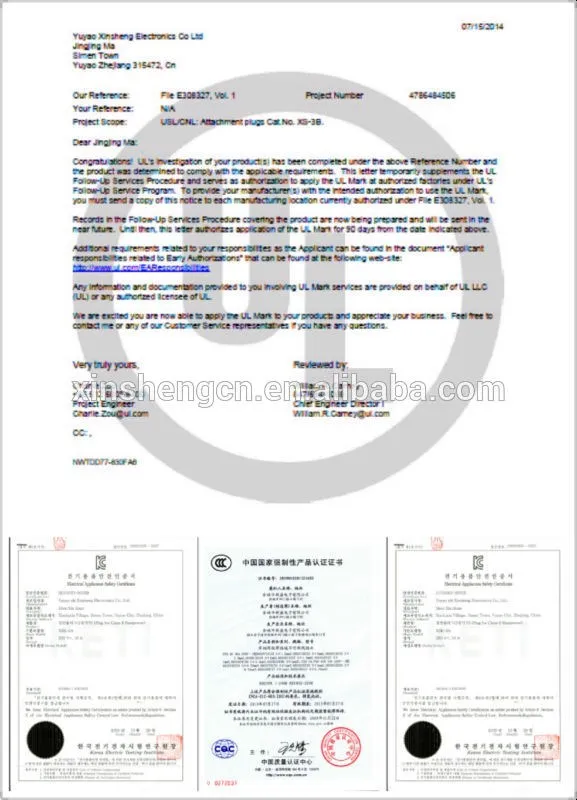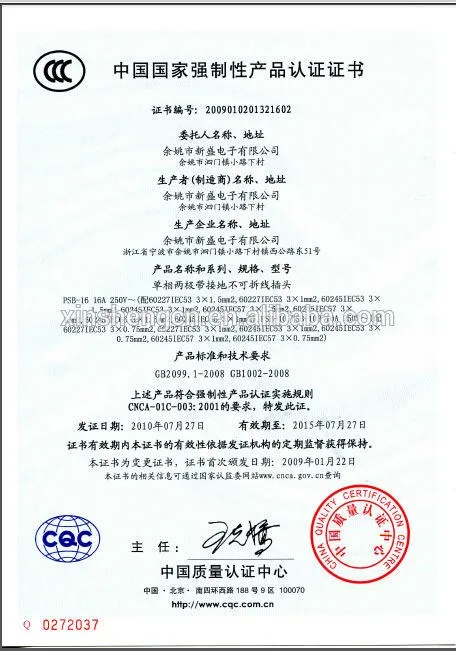 Ningbo Xinsheng Electronics Group Corp. (Yuyao City Xinsheng Electronics Co., Ltd.) is known as a Zhejiang Provincial Key Enterprise. Covering 20,000sqm of floor space, we specialize in the manufacture of varopis power sources, power cords, power cord plugs, sockets, lamps and lanterns, cord spools and related products to the standards of all countries in the world.