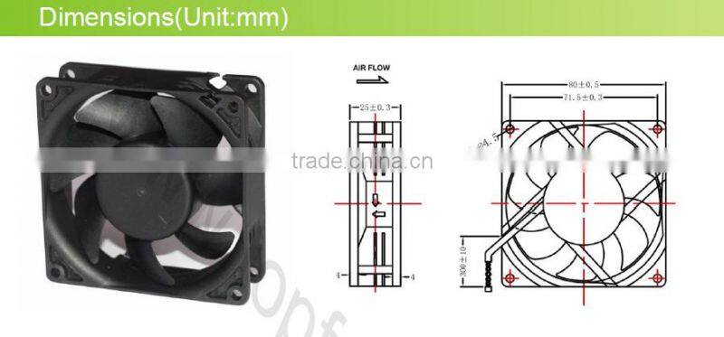 80MM AC AXIAL COOLING FAN 80*80*25MM with CE ROHS Certificated