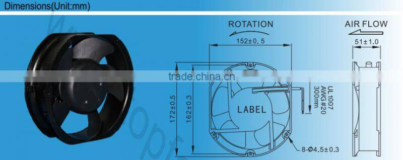 172mm AC 220V OR 230V Fan Radiator Fan / High Temperature