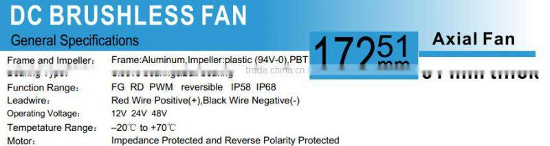 24V / 48V DC High-temperature Exhaust cooling fan 172*51