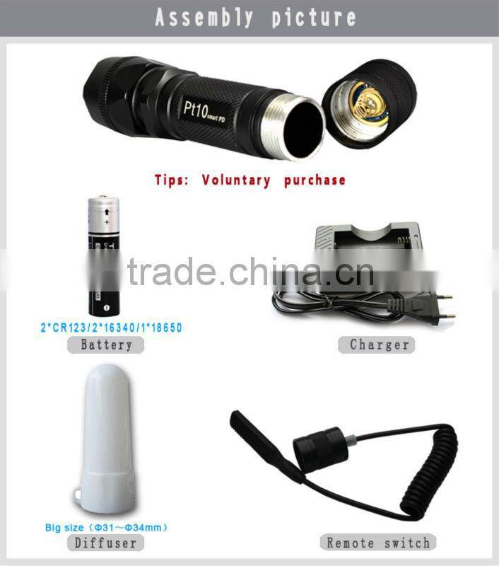 High Power Aluminum Alloy Rechargeable Wholesale Tactical Flashlight PT10