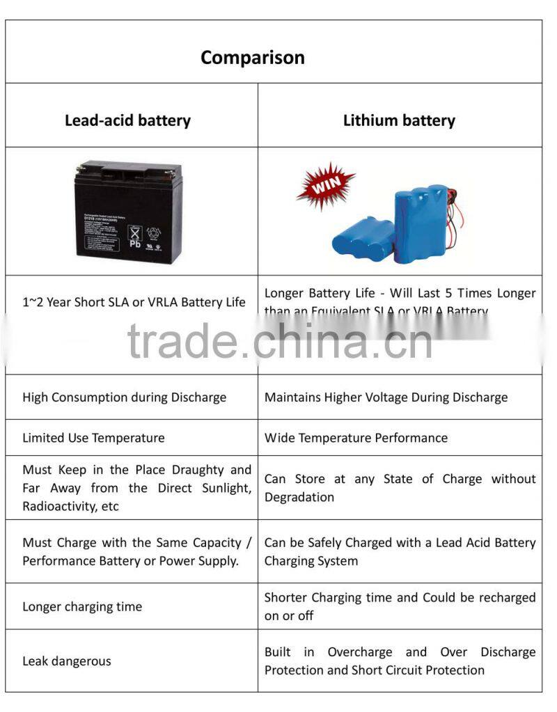 Battery type | Lithium cell, 12V 2.4AH, with 600 times cycle |