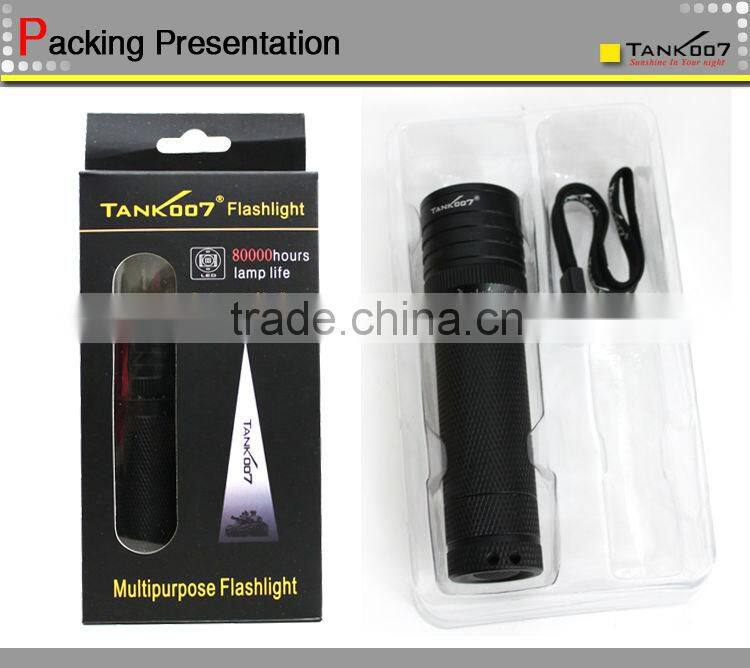 Military Quality 260 Lumens 5 Modes Zoom Flashlight Torch With 2*AAA Battery From TANK007 Manufacturer