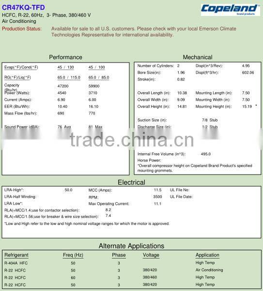 - Copeland compressor CR47KQ-TFD have passed the CE certification.