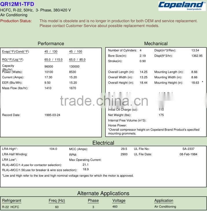 Home > Products > Reciprocating Compressor > Copeland Compressor Qr12