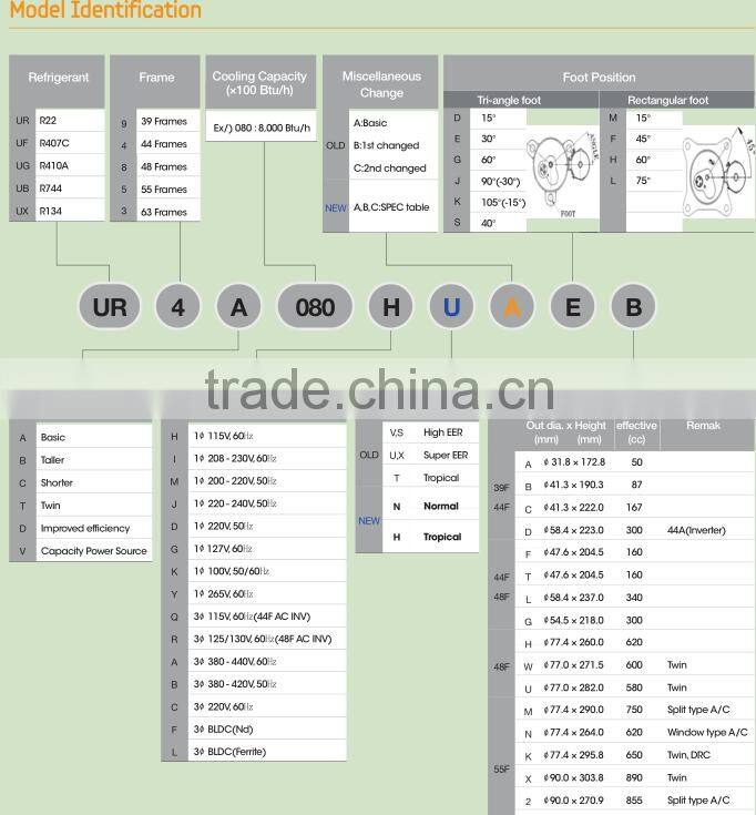 | Model Number | UG9C060YS | Type | Refrigeration Compressor | |