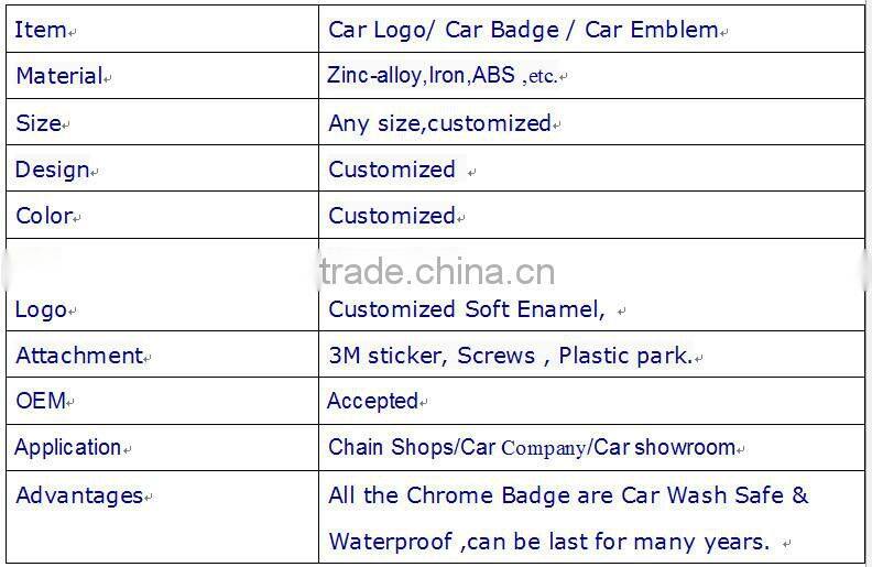 Bright ABS Car Logo is Designed for All Kinds of Car and Can be Customized on Your Own Design With Inexpensive Price