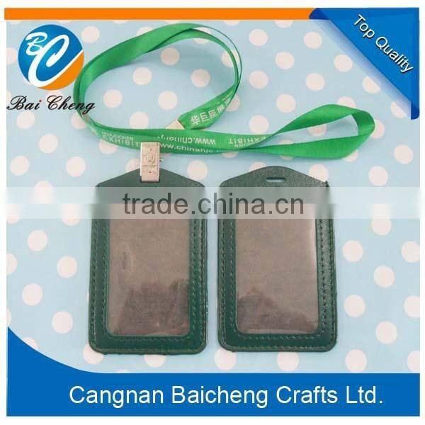 Leather Material Card Sleeve With Nice Nylon Lanyards for Business