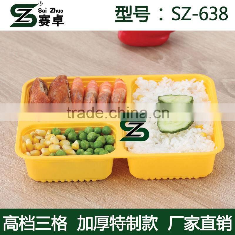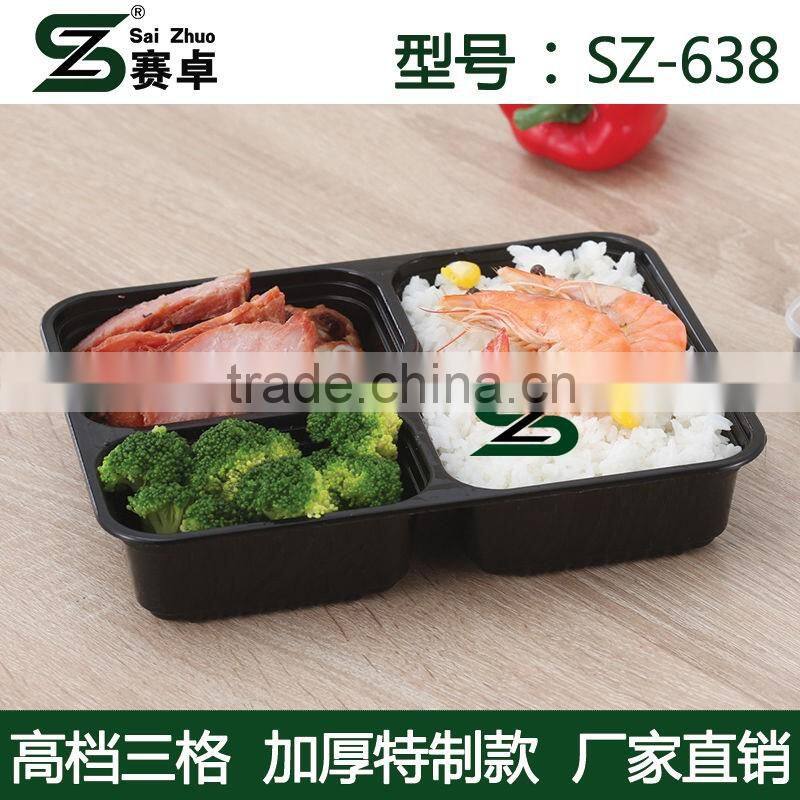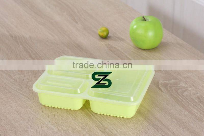 square 3compartment disposable plastic food container with clear lid, microwave safe ,FDA approval,LFGB approval