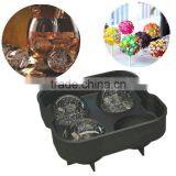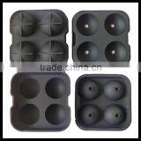 Round shape silicone ice cube tray maker, silicone 4 ice tray, silicone whiskey ice ball tray