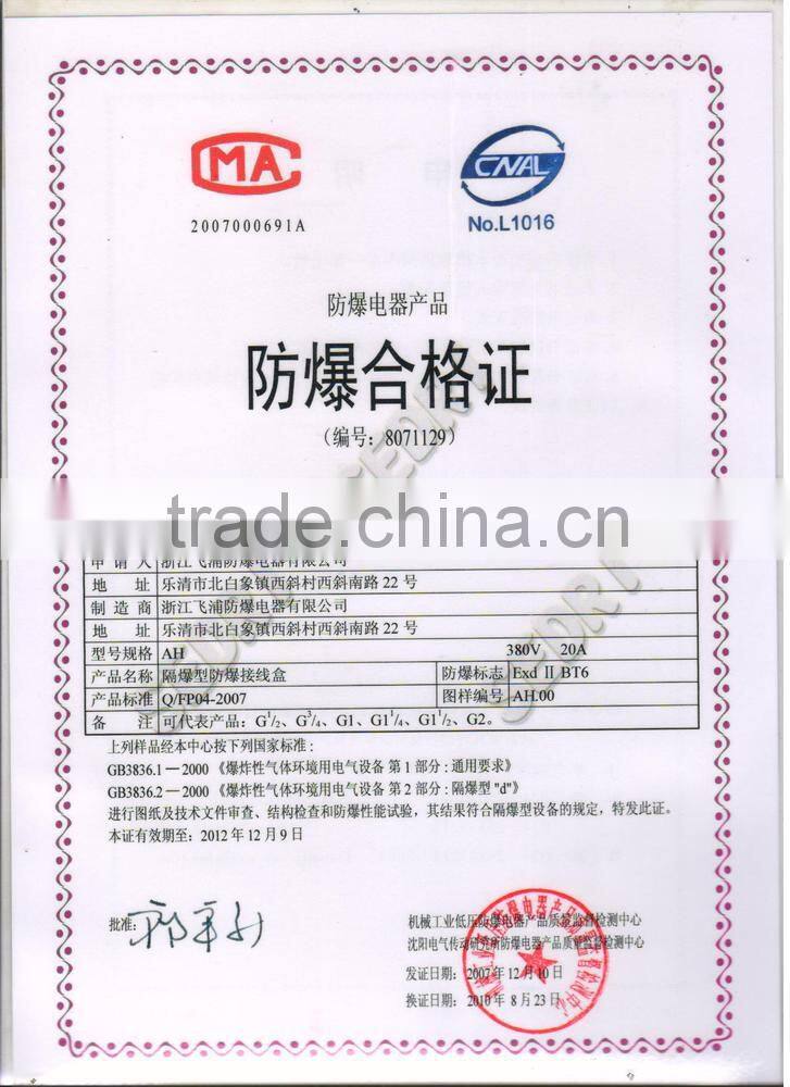 We have wide range explosion proof products of lamp & light fixtures, electrical equipments, and box & fittings. And excellent company crew of R&D, marketing and artificers that has abundant experience in both Chinese domestic market and overseas markets.