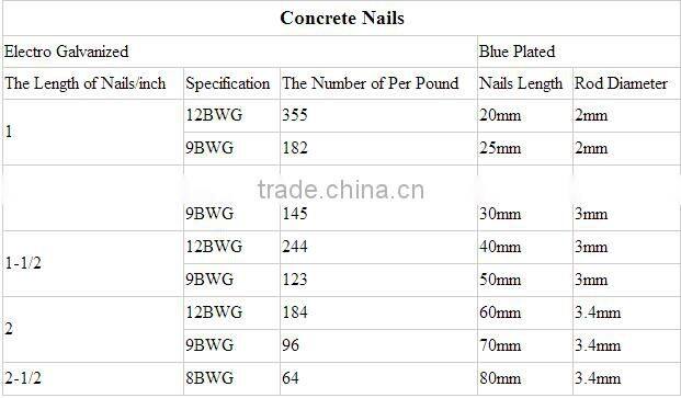 Made in China Galvanized Concrete Nail/Hardened Steel Concrete Nails/Concrete Nail Quality Choice