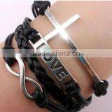 Cross Bracelet Infinity Love Black Leather Rope Infinite Bangle