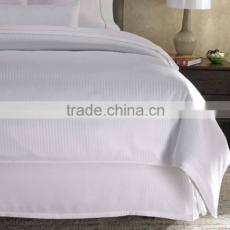 100% Cotton Percale White Color Stripe Bedding Set / Bed Sheet Wholesale