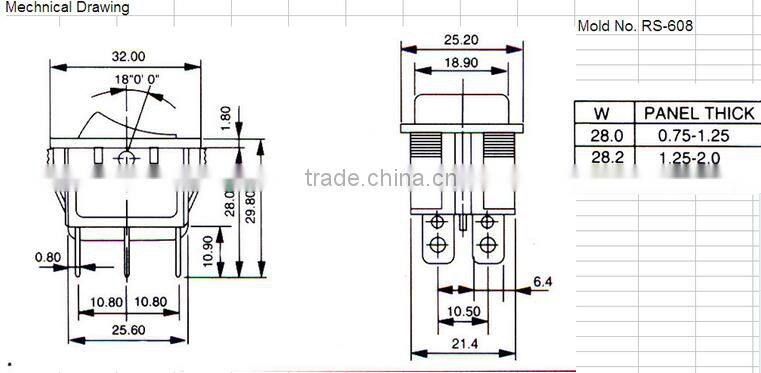 2016 Hot Selling Waterproof 4pin Rocker Switch With Red Light RS-608,4P High Quality China Supplier