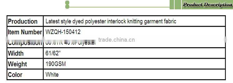 WZQH-150405 Shaoxing Dyed Polyester Knitted Garment Interlock Fabric