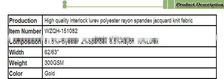 Home > Products > Jacquard > High Quality Interlock Lurev Polyester Rayon Spandex Jacquard Knit Fabric