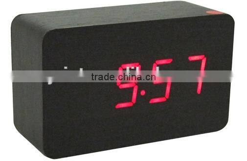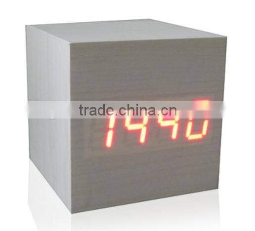 Hot sell muti-function wooden cube LED table clock