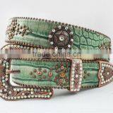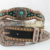 2015 New Design Western Rhinestone Leather Belt With Turquoise Concho