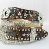 2015 New Design Western Rhinestone Leather Belt With Pentagram Flower Conshos and Crystals