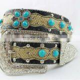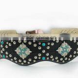 2015 New Design Western Turquoise Conchos Horsehair Rhinestone Belt