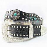 Fashion Turquoise Cross Studded Crocodile Leather Western Belt With Rhinestone