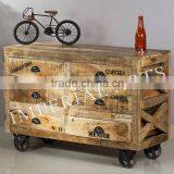 INDIAN MANGO WOOD SIDE BOARD WITH IRON WHEEL