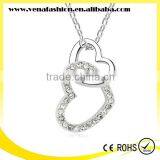 Cheap Double Heart Fake Diamond Necklaces, Synthetic Diamond Necklace